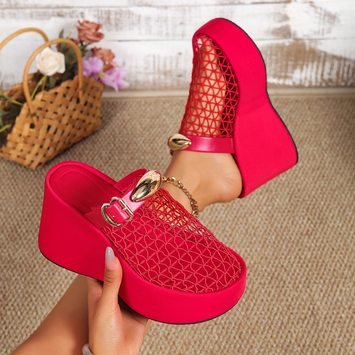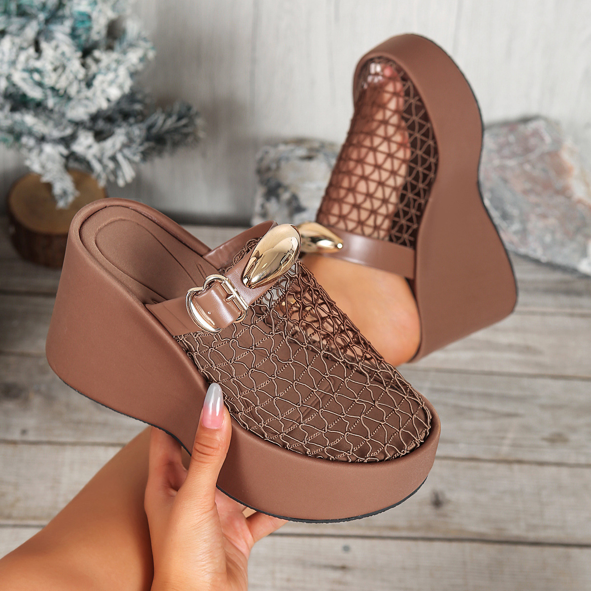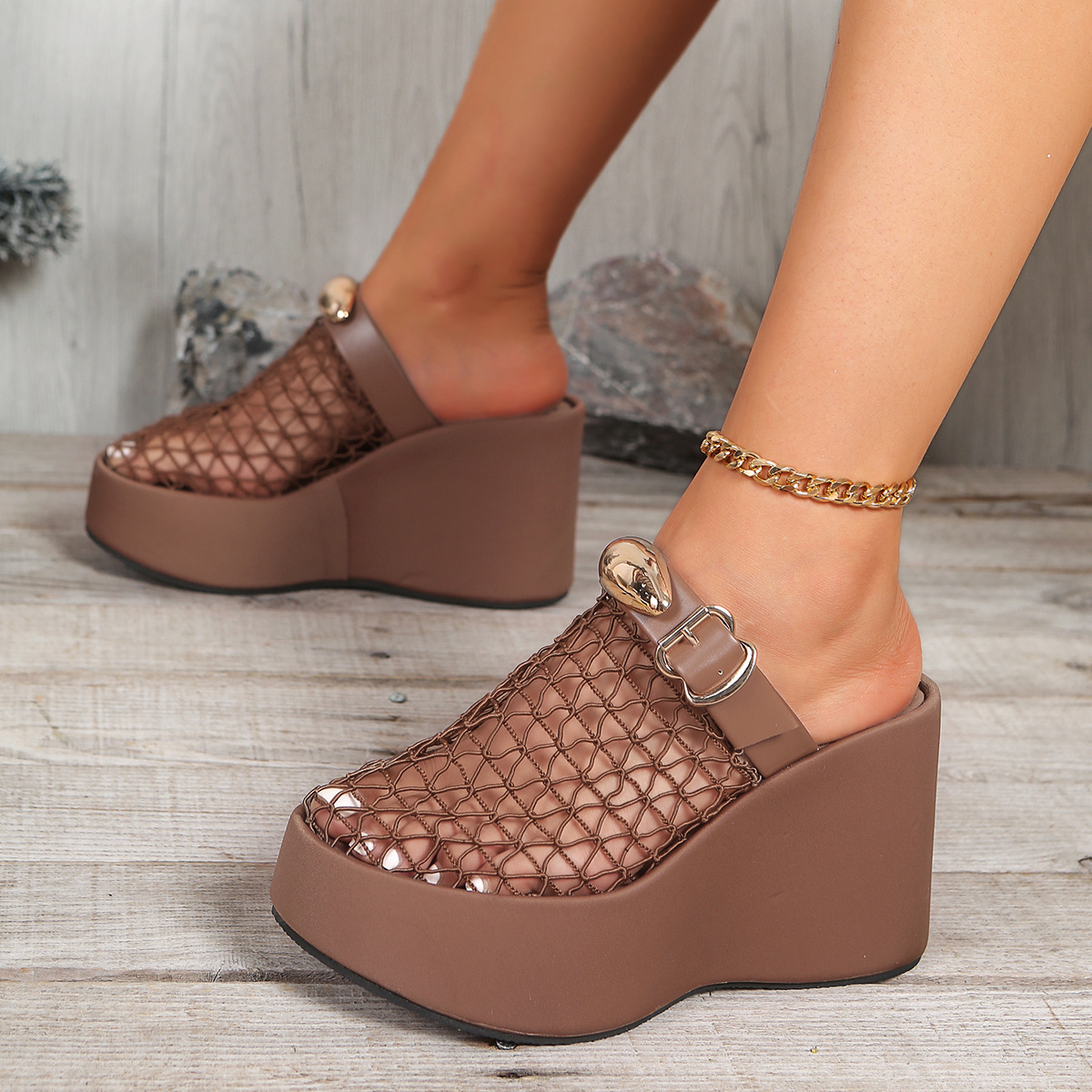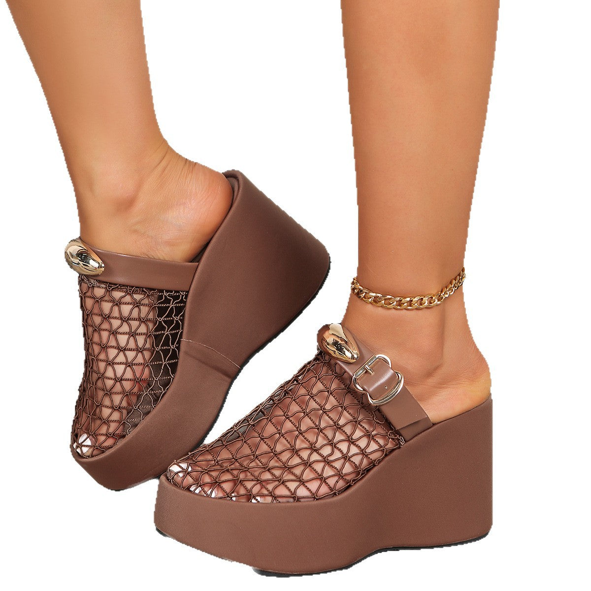 Metal Buckle Thick Sole Openwork Mesh Breathable Sandals