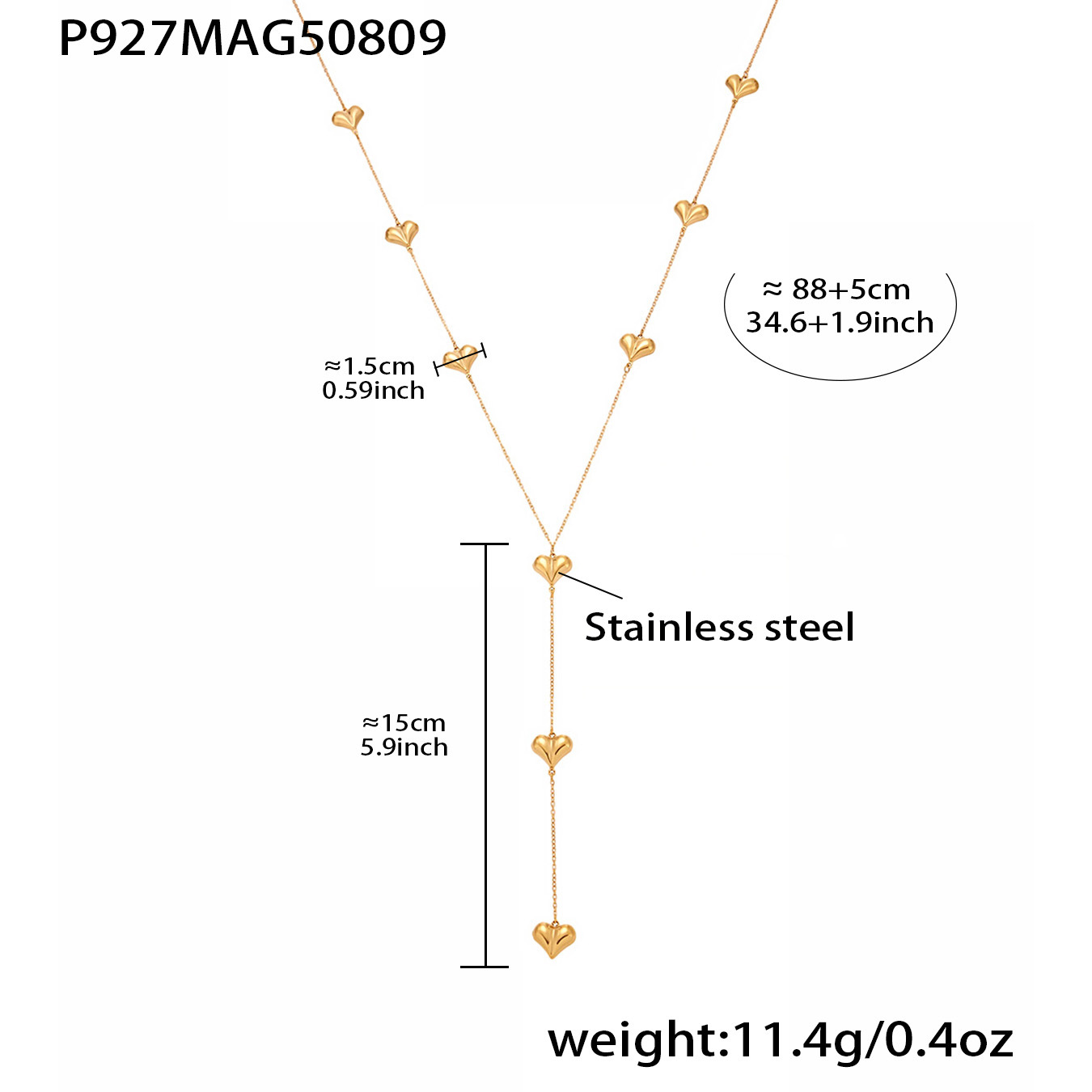 Product information: Color: P927 - Gold Heart-Shaped Y-Chain Necklace, 88.5 cm Material: Titanium Steel Trendy Element: Chain Shape: Geometric