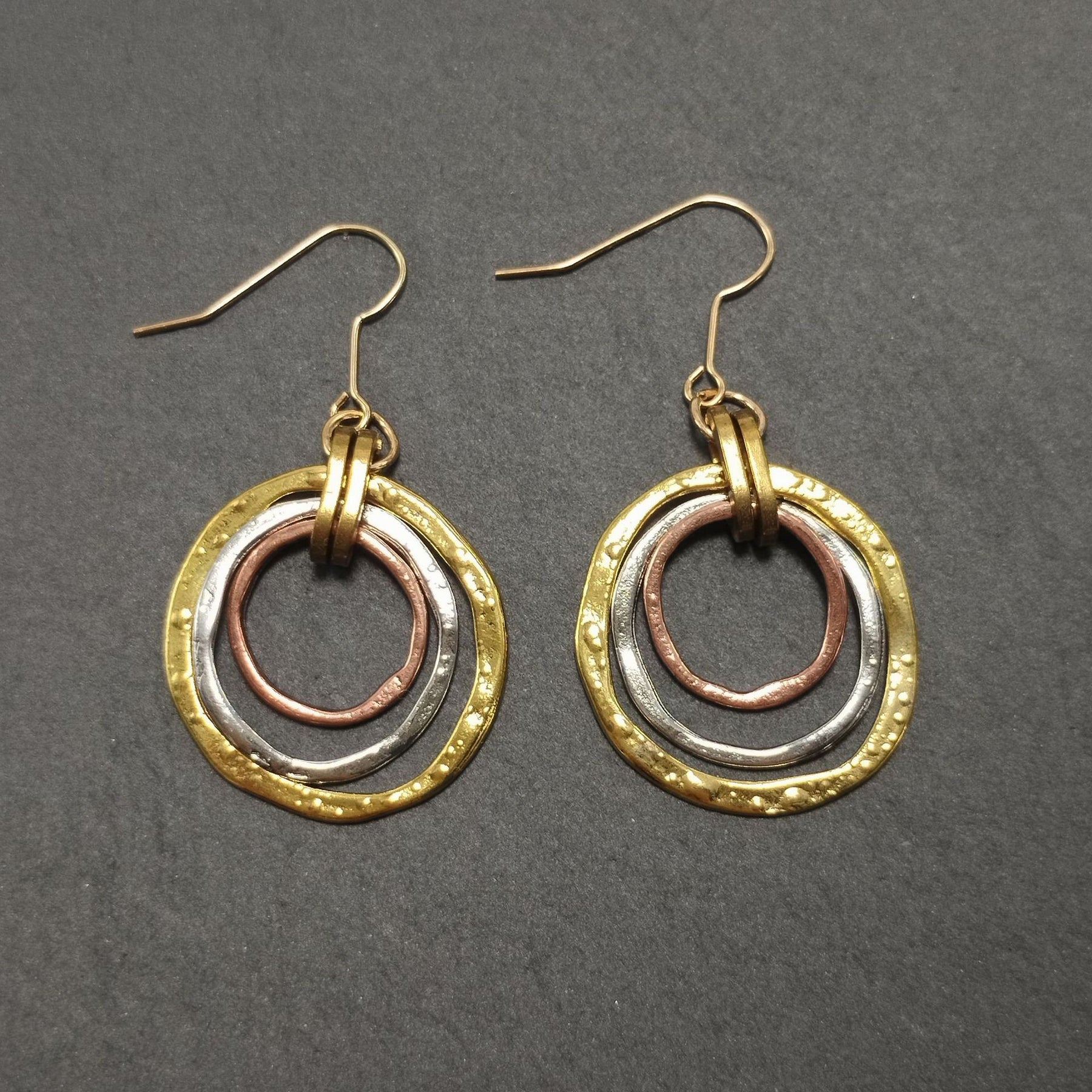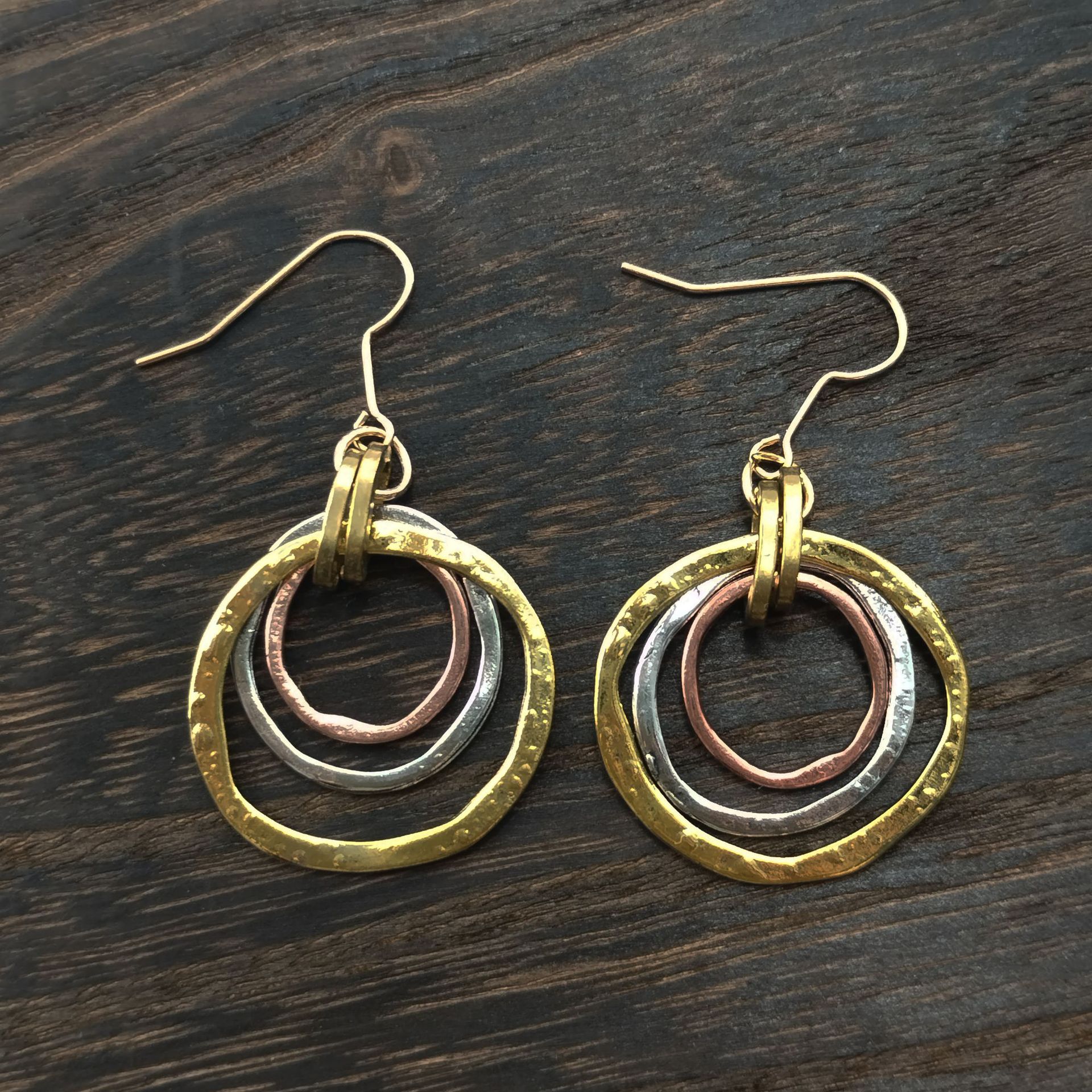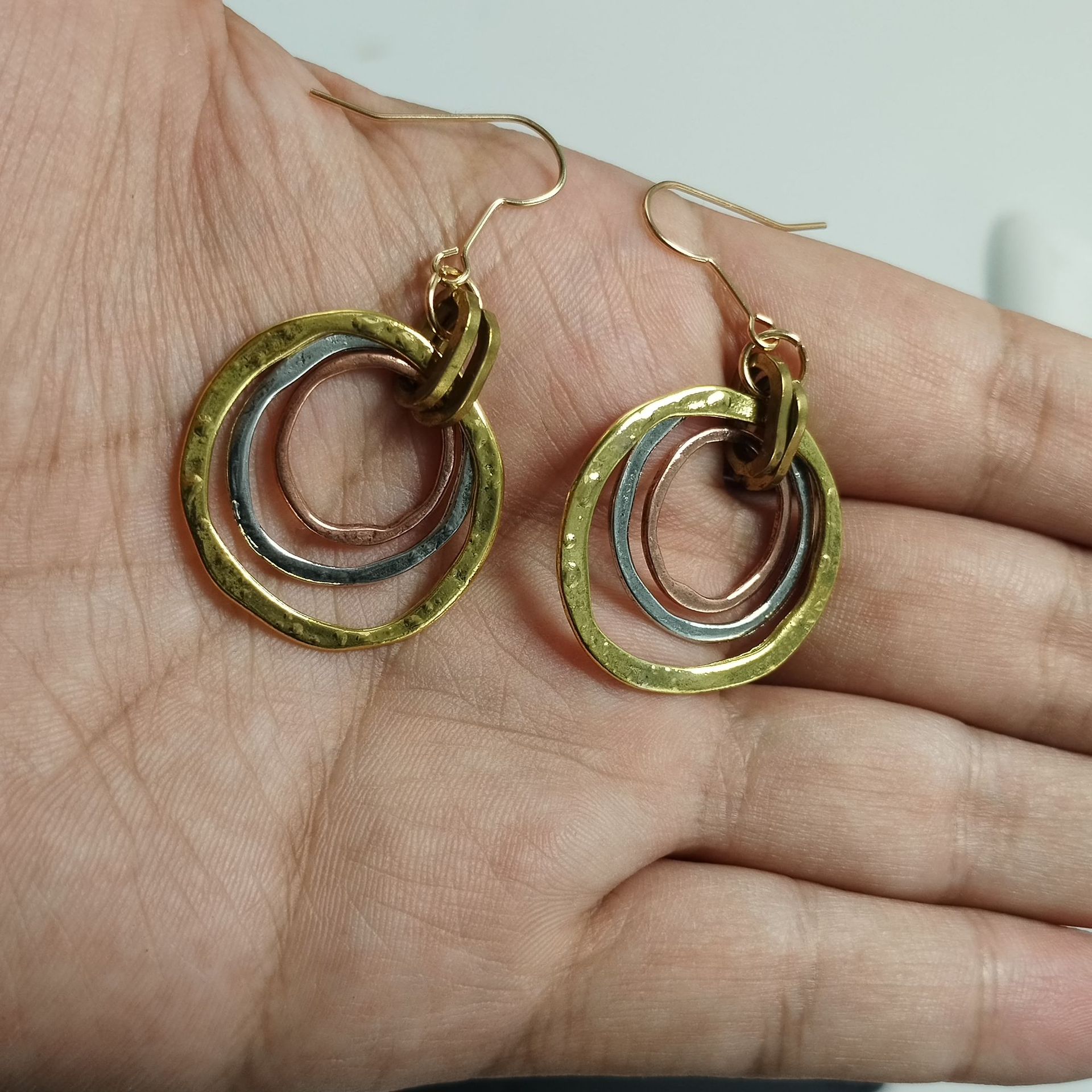 Product information: Color: QG010 – Color-Block Three-Ring Earrings, J207, J209 Target Audience: Women Material: Alloy Design: 3283093 Trendy Element: Circular Style: Ethnic Craftsmanship: Electroplating