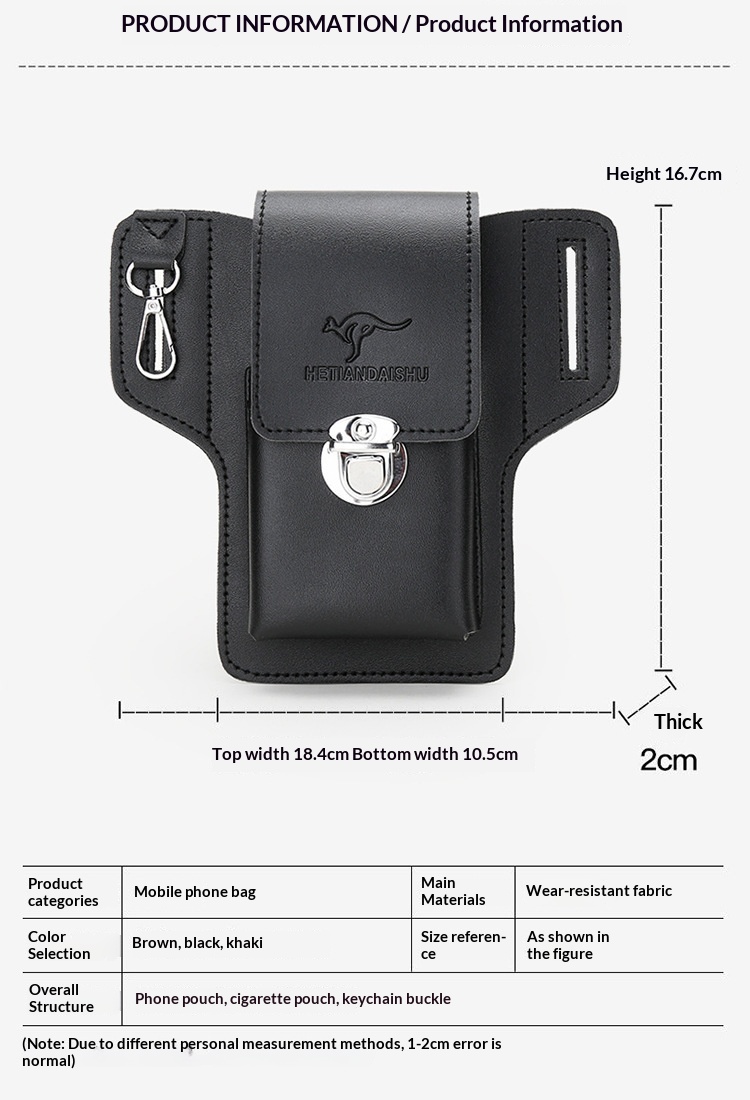 Product information: Lining material: Polyester Applicable occasions: Everyday wear Colors: Black, brown, khaki Suitable gender: Men Material: PU Bag shape: Vertical rectangle Fashion elements: Stitched seams, buckle Style: Urban minimalist